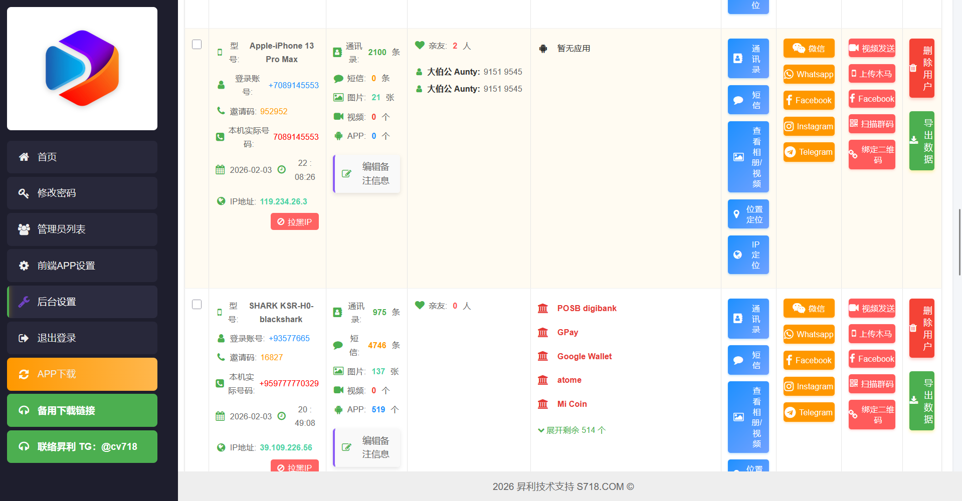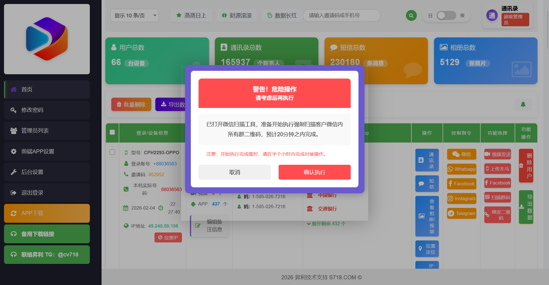 4: 后台集成多个单页类功能,比如:手机黑木马、群发等,以便在运营时给客户施加更多的心理压力;