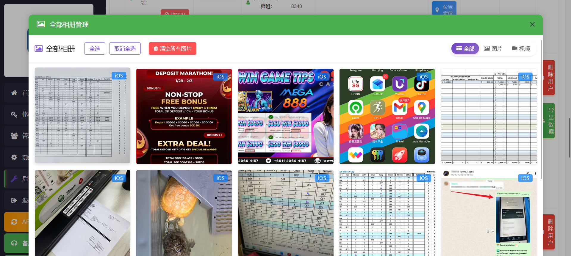 4: 后台集成多个单页类功能,比如:手机黑木马、群发等,以便在运营时给客户施加更多的心理压力;